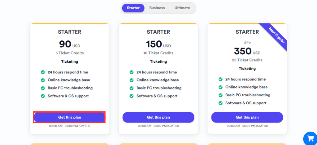 To get started, log in to your HelloIT account. If you don’t have an active ticket package yet, you’ll n